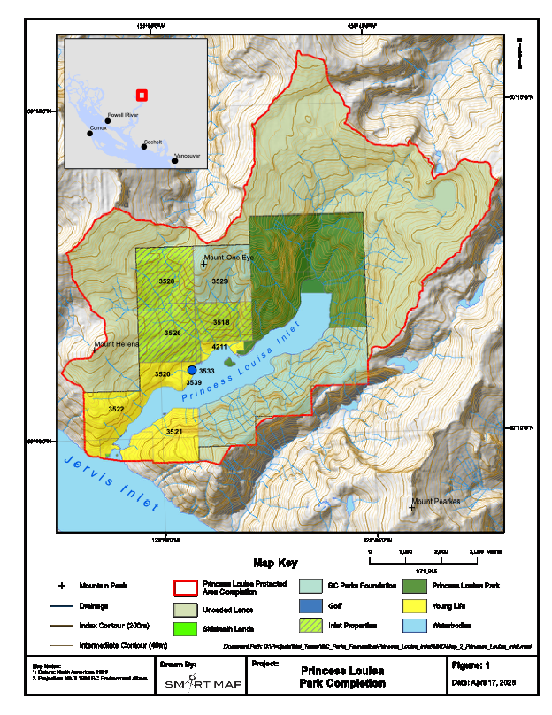 On October 10, 2003, the Government of British Columbia informed us that it was accepting the generous gift of the approximately 2200 acres surrounding the existing Princess Louisa Marine Park.